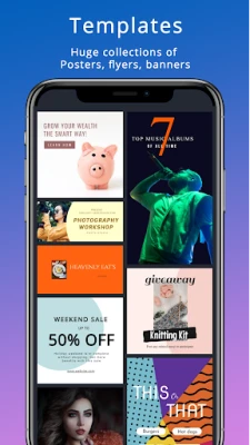 Create posters and banners for business promotion, brand marketing and events. The Poster maker has creative graphic designs with collections of sales posters, music party posters and business Advertisement banner.