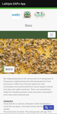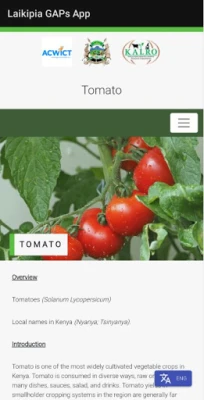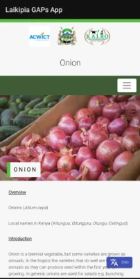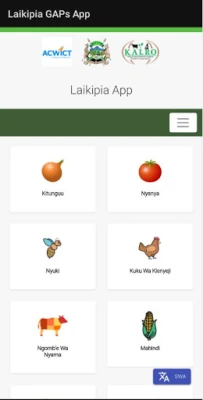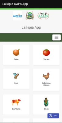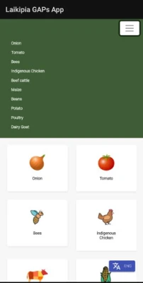 Onion, Tomato, Bees, Indigenous Chicken, Beef cattle, Maize, Beans, Potato, Poultry and Dairy Goat Mobile Application showing the various Gaps.