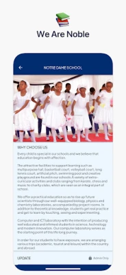 Notre Dame School is a Catholic Institution in Arusha Arch Diocese, managed by The Society of the Congregation of the Sisters of Notre Dame, Tanzania. Therefore, the decisions of The Governing Body find the source in Christian philosophy and theology. Notre Dame School traces its origin to its Spiritual Mother, St. Julie Billiart of France, who founded the Congregation of the Sisters of Notre Dame in, Namur, Belgium in 1804.
