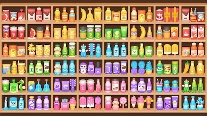 ⭐ The goal of this sort of puzzle game is easy yet fun: you just organize multiple goods 🍧 and items on the shelves! It will challenge your eyesight and brainpower!