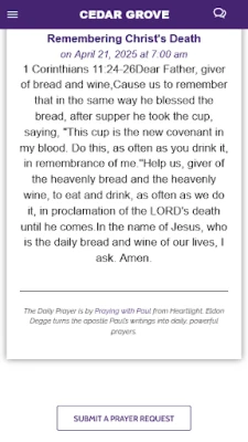 With the The Grove (Cedar Grove Tabernacle of Praise) App, you'll have easy access to a range of features including sermons, an event calendar to keep up with upcoming events, an online bible, a photo gallery, prayer requests, and about us and service times information to get in touch with us.