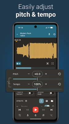 - Advanced Audio Editing: Beyond pitch and speed, Up Tempo offers a full suite of audio editing tools, including an equalizer, reverb, delay, bass cut, and more (Pro version). Perfect for refining your audio projects